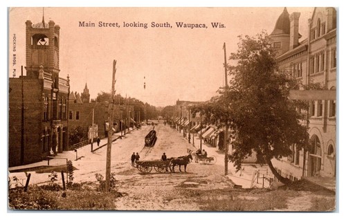 1911 Main Street Looking South Waupaca Wi Fake Trolley Postcard 5j17 Ebay